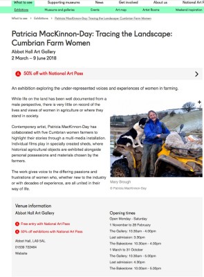 Tracing the Landscape: Cumbrian Farm Women, Patricia MacKinnon-Day has been commissioned by Arts Council England and Lakeland Arts.